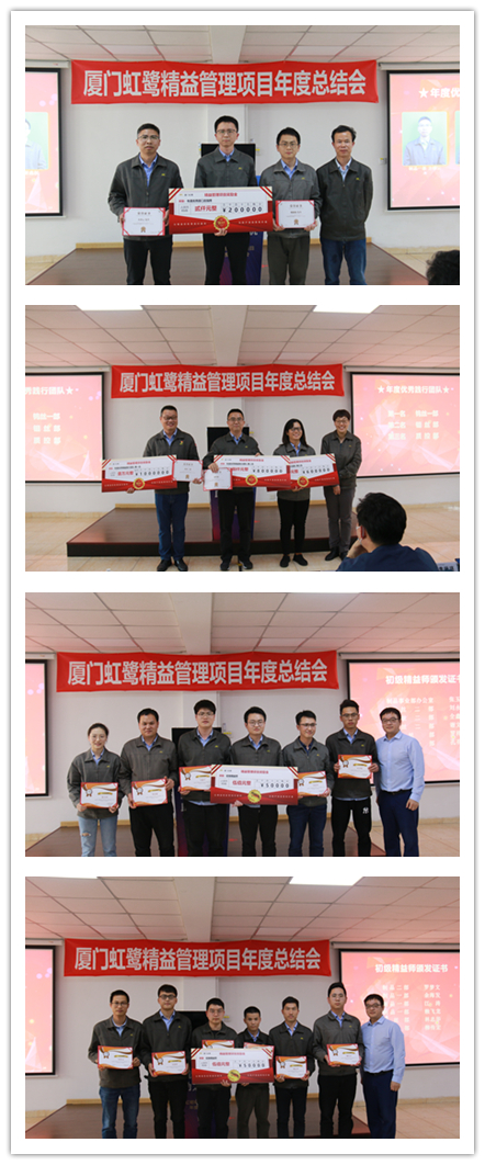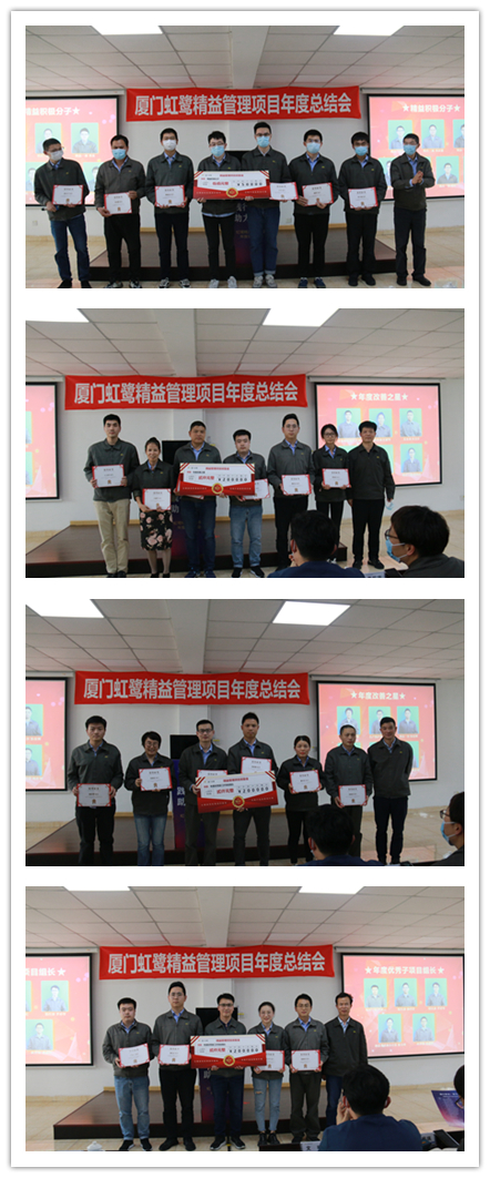 在公司執(zhí)委班子的領導下,在全體虹鷺人的共同努力下 ,廈門虹鷺精益工作取得累累碩果。會上,虹鷺高管對2021年度精益項目實施過程中表現優(yōu)秀的團隊及個人進行表彰獎勵,肯定他們?yōu)楣揪孀兏镒龀龅呢暙I。