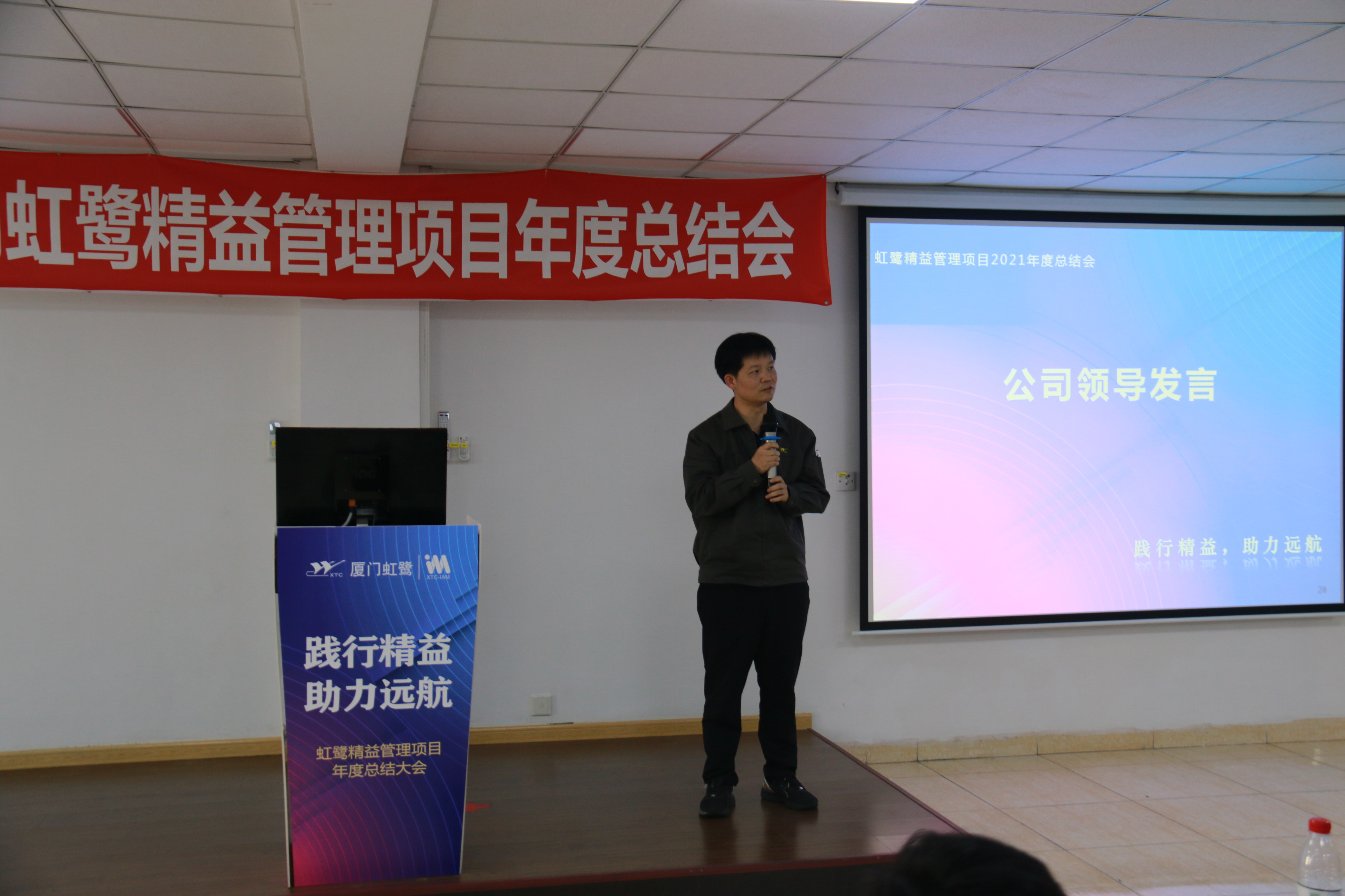 張總用“從無到有,搭建了精益框架;以點帶面,點燃了星星之火”總結了2021年度廈門虹鷺精益工作的推進歷程,并從“業(yè)財融合、自主自律、鞏固提升、配套激勵”十六個字,展開對2022年的精益工作的明確要求,為廈門虹鷺今后的精益管理項目指明了方向。