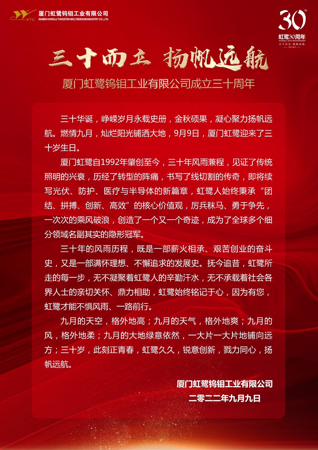 廈門虹鷺天翔二期落成暨600億米光伏用鎢絲產(chǎn)線開工儀式于11月30日在集美區(qū)舉行!