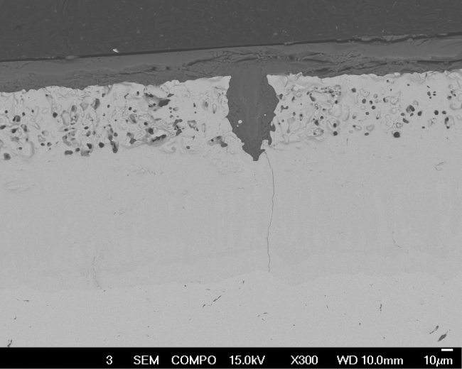 按比例擴大涂層的實際尺寸的GME,正如我們在涂層的橫截面圖中所看到的:每一層都很平滑地相互融合,優(yōu)點是將消除涂層結(jié)構(gòu)中各層之間的界面,并提供更好的抗氧化和硅向內(nèi)擴散的能力,而且涂層與基體之間沒有形成Mo氧化物層。