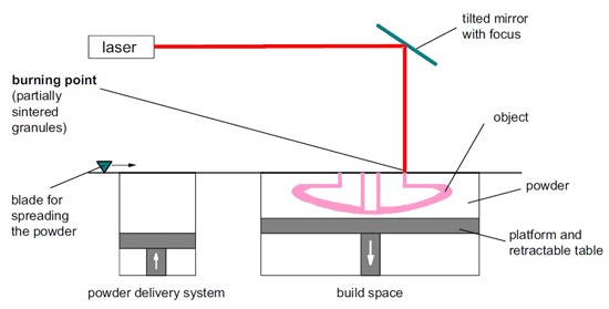 直接粉末加工系統(tǒng)被稱為激光熔化工藝,并且使用許多名稱商業(yè)化推廣,例如選擇性激光熔化(SLM),激光熔凝和直接金屬激光燒(DMLS)。該工藝的唯一例外是電子束熔化(EBM)工藝,該工藝在完全真空下使用電子束。
